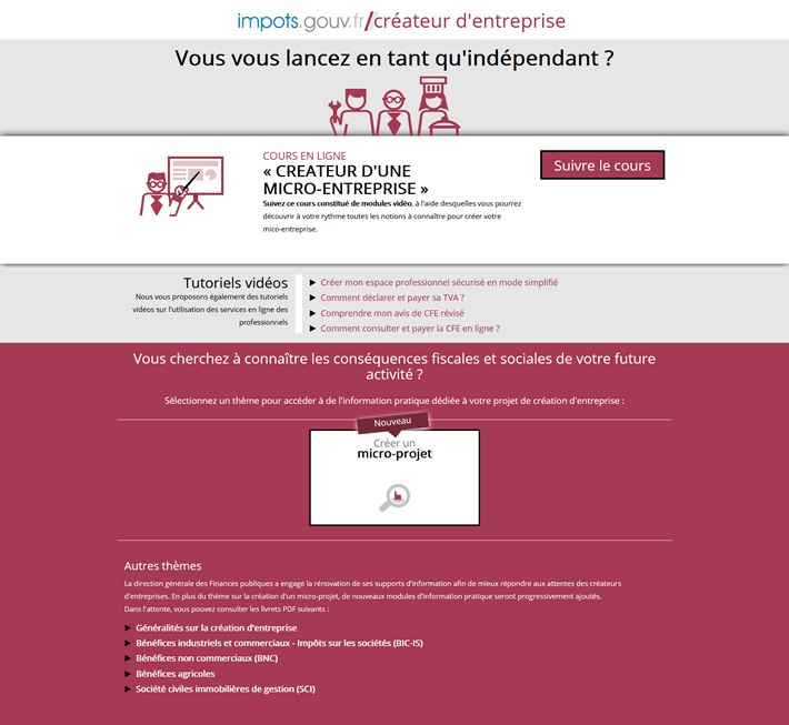 - soit directement à l'adresse https://www.impots.gouv.fr/portail/createur-entreprise.