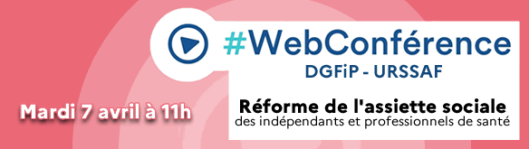 La DGFiP et l'URSSAF organisent le mardi 7 avril 2026 de 11h à 12h un webinaire pour tout savoir sur la réforme de l’assiette sociale des travailleurs indépendants, des praticiens et auxiliaires médicaux,