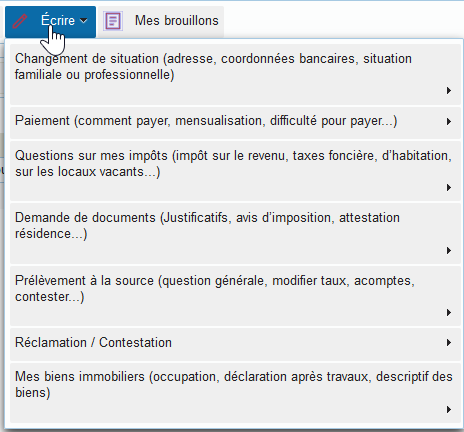 Puis cliquez sur « Ecrire » afin de sélectionner le motif de votre demande et laissez-vous guider.