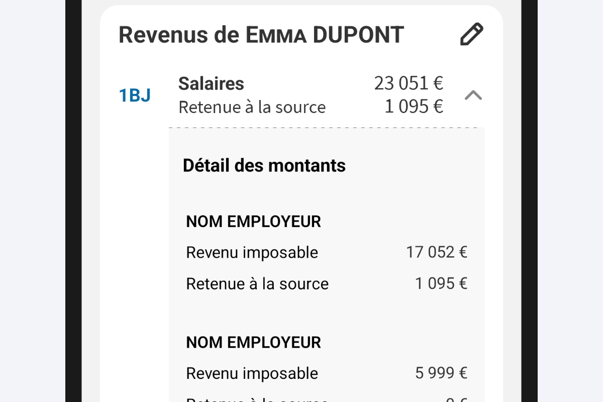 - Un appui sur un revenu permet d'afficher le détail de son montant.