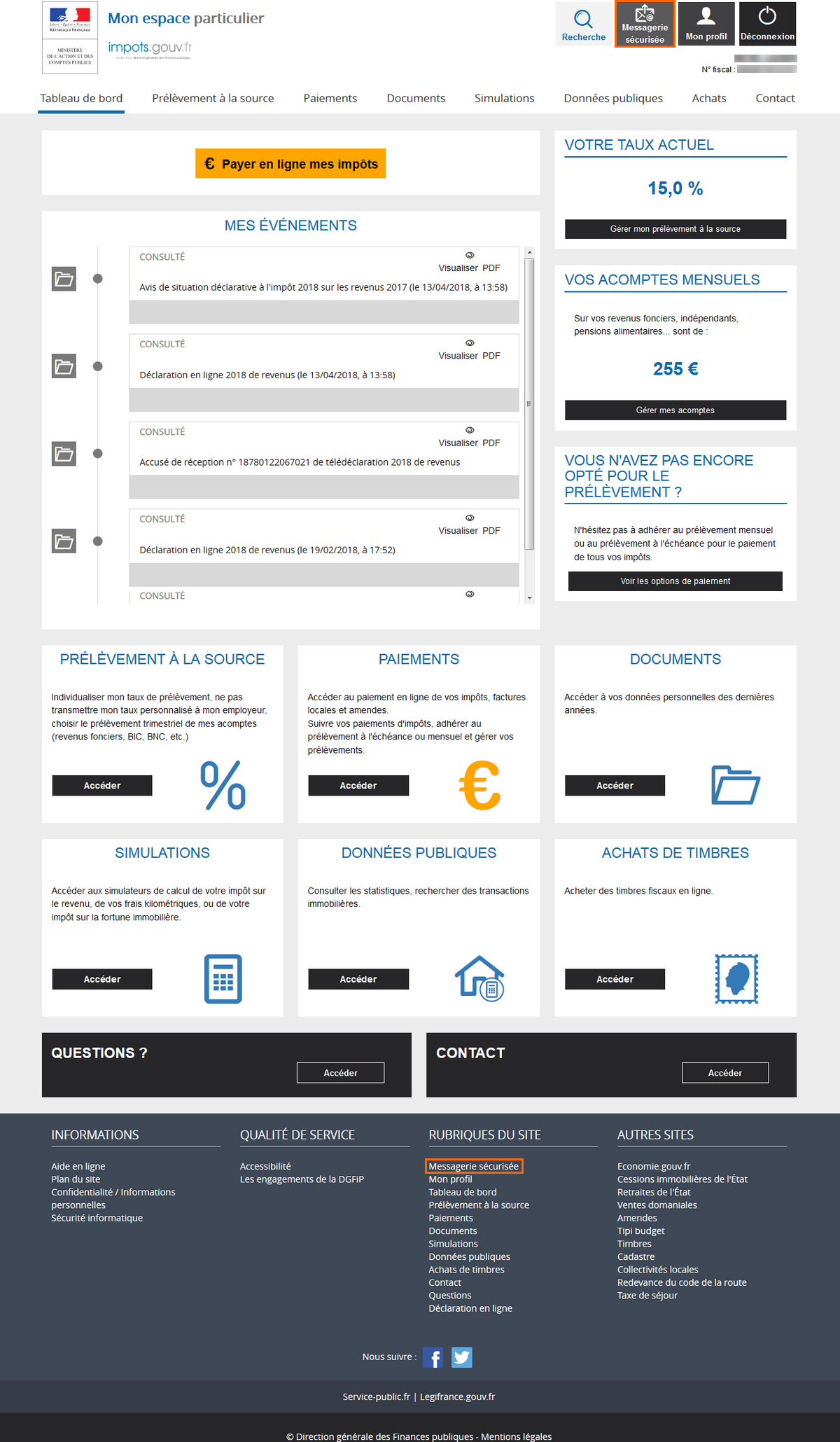 Une fois connecté à son espace particulier, l'usager clique sur « Messagerie sécurisée ».