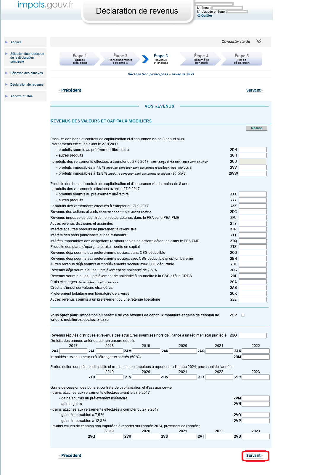 PrécédentPrécédent Aide Sélection des rubriques de la déclaration de revenus Suivant Suivant Accueil
