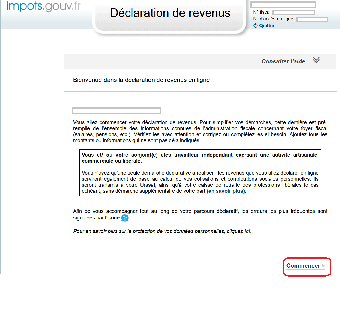Ce scénario présente la saisie d'une déclaration en ligne avec un déménagement.